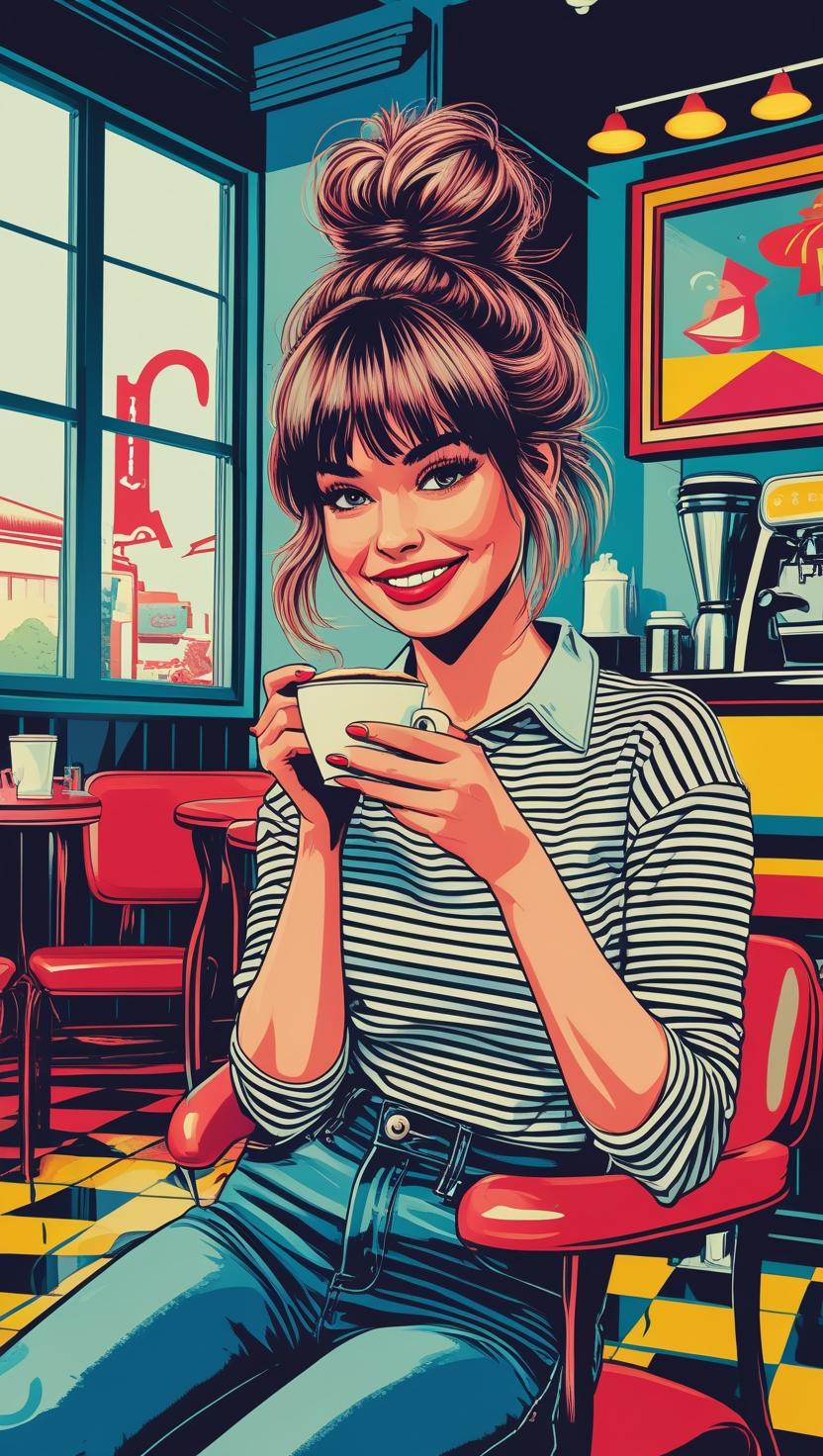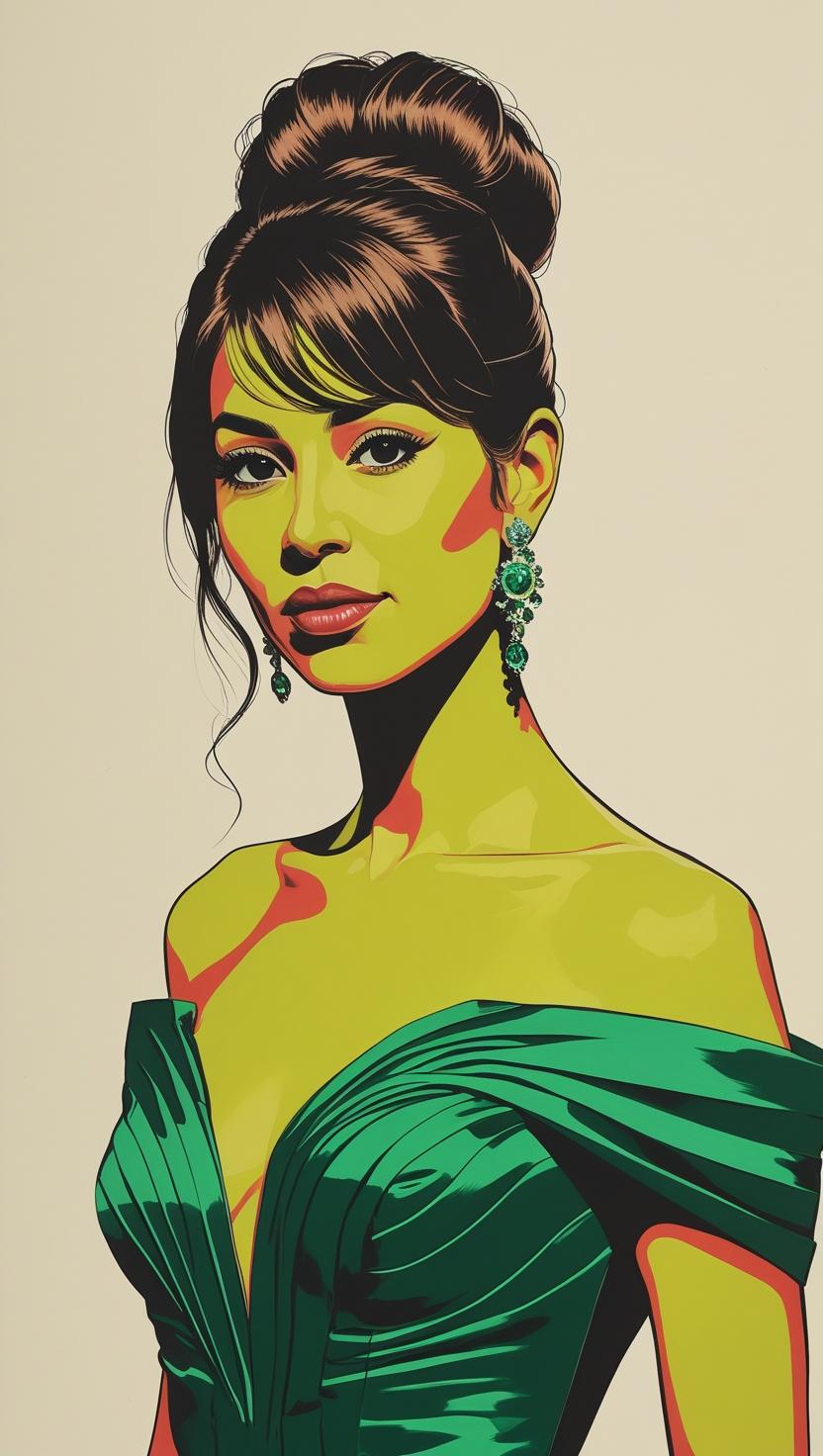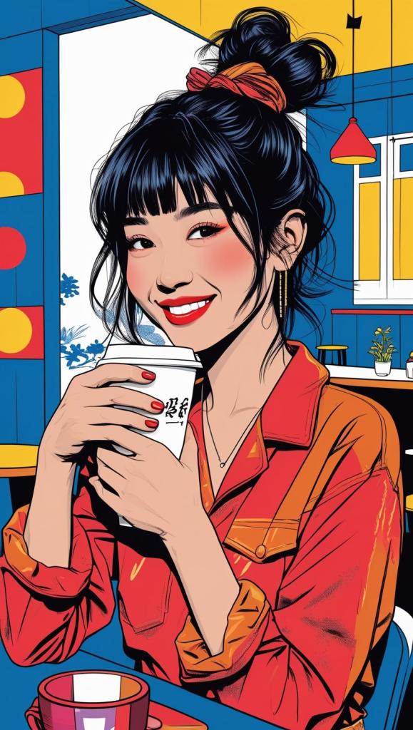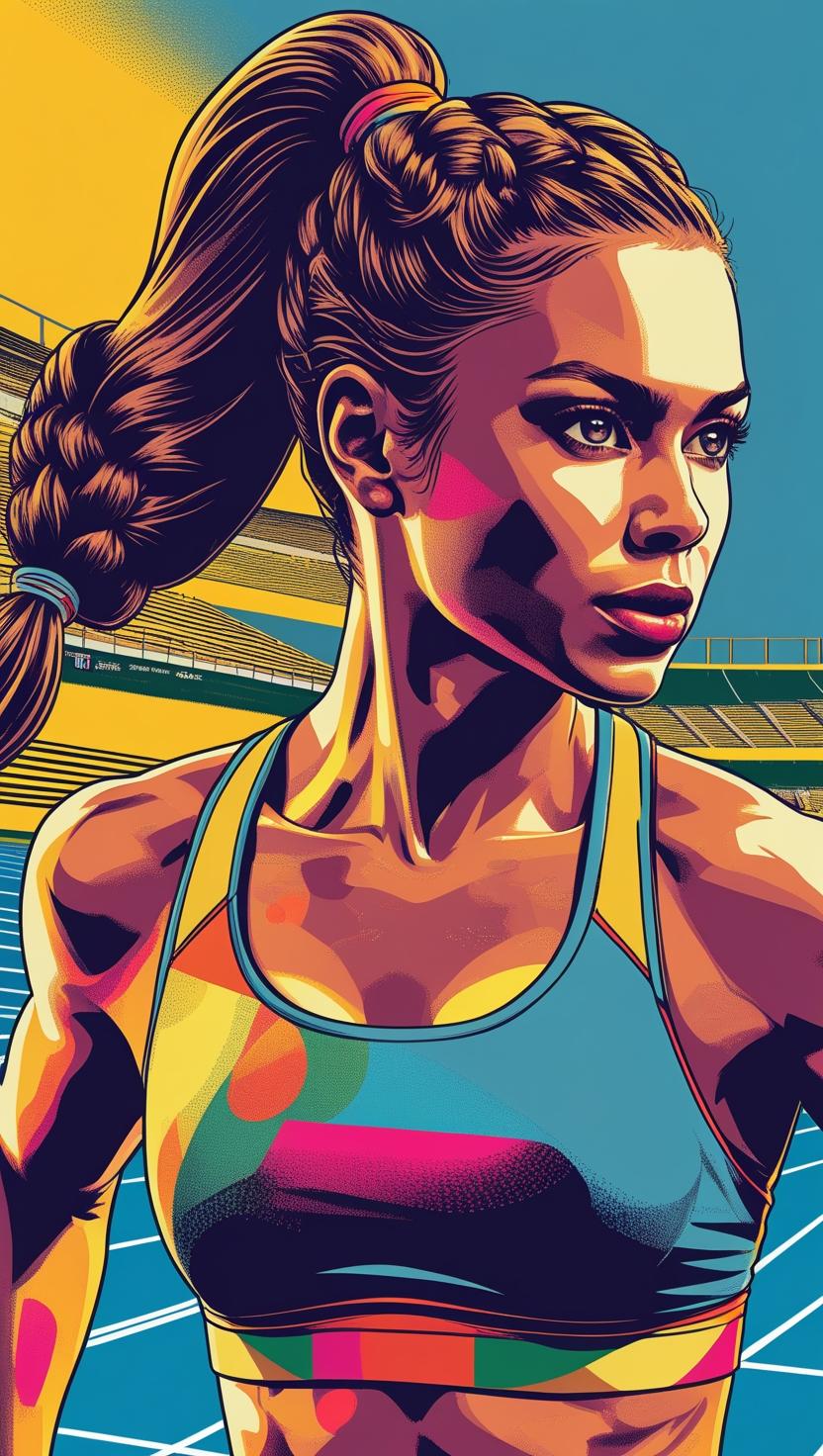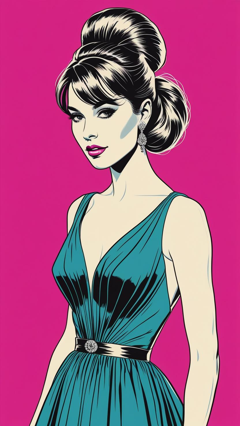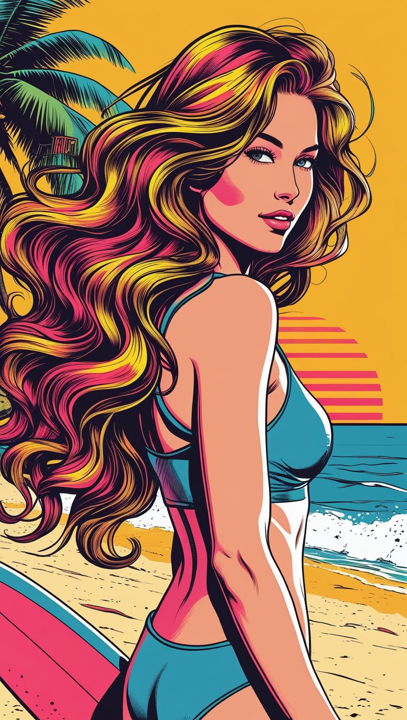 A futuristic woman with vibrant, metallic space buns and neon streaks, against a backdrop of glowing city lights.short hair