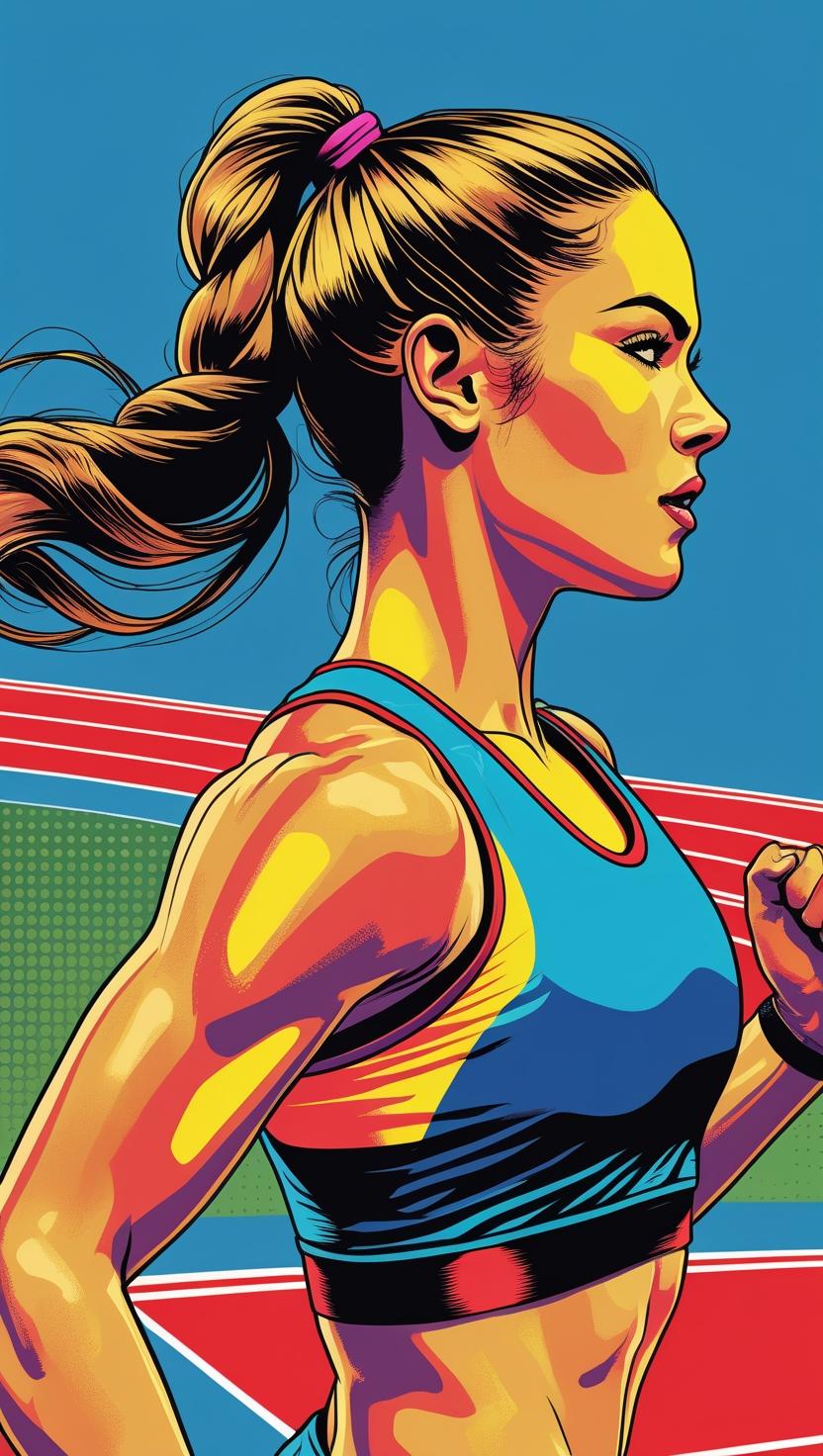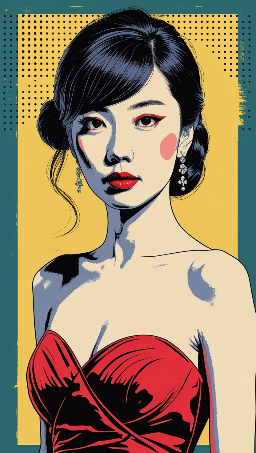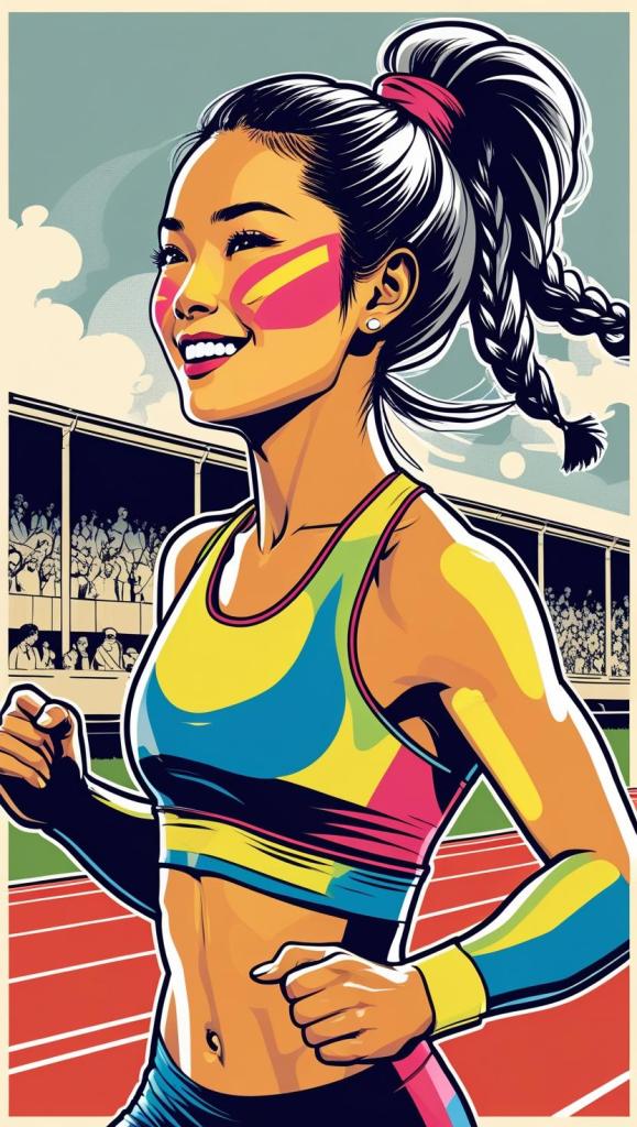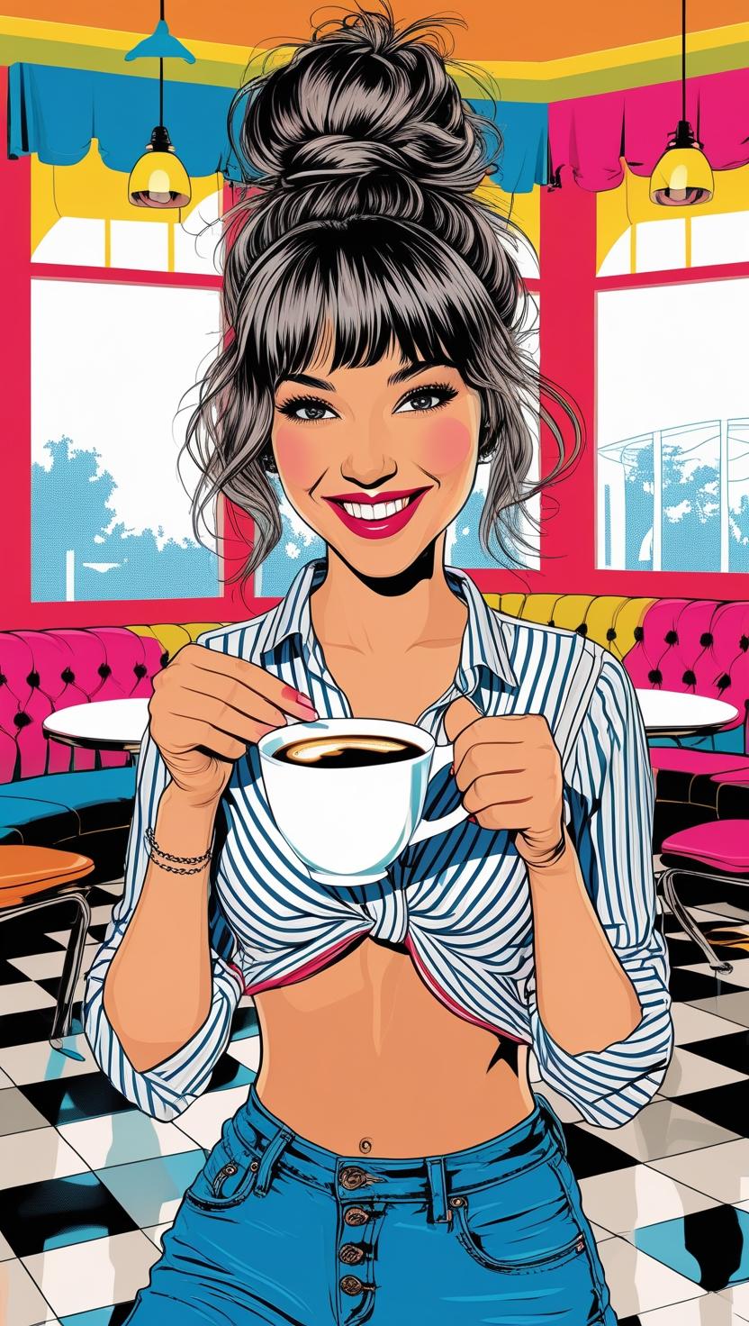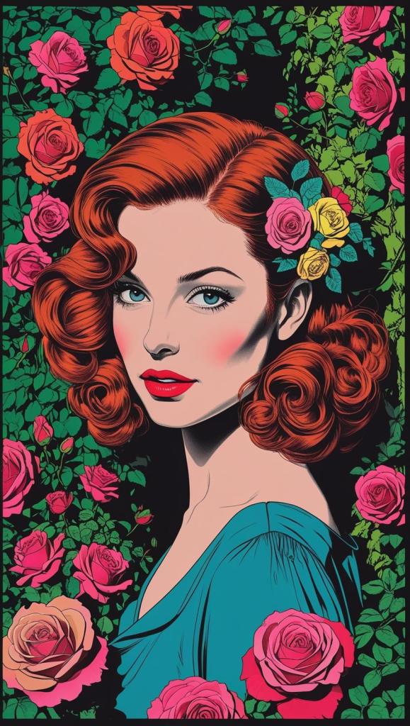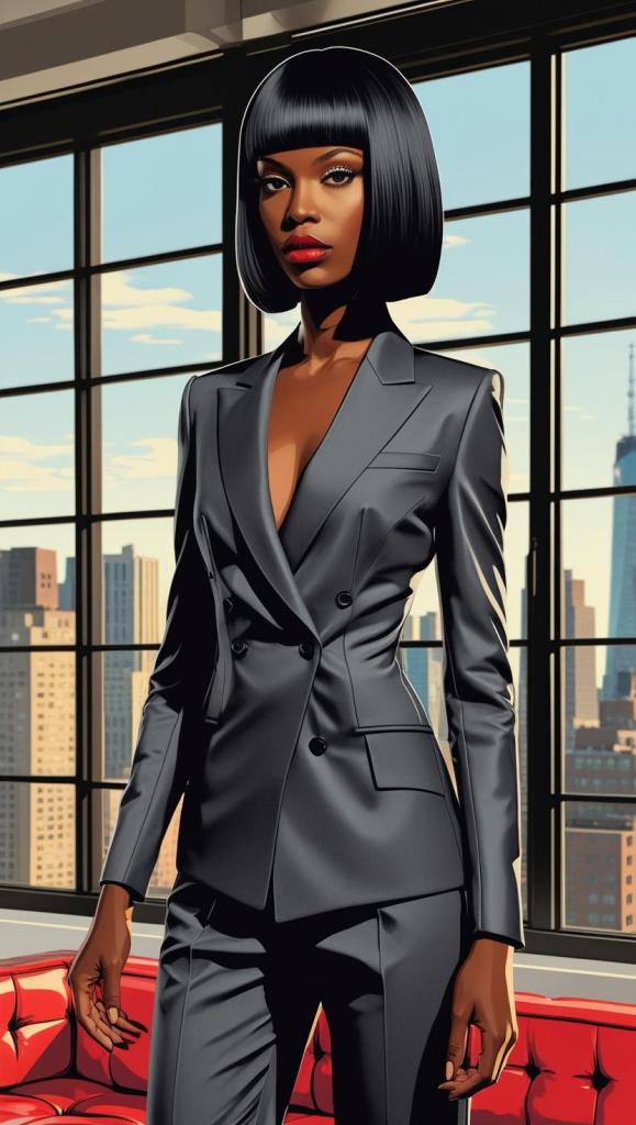 A futuristic woman with vibrant, metallic space buns and neon streaks, against a backdrop of glowing city lights.short hair