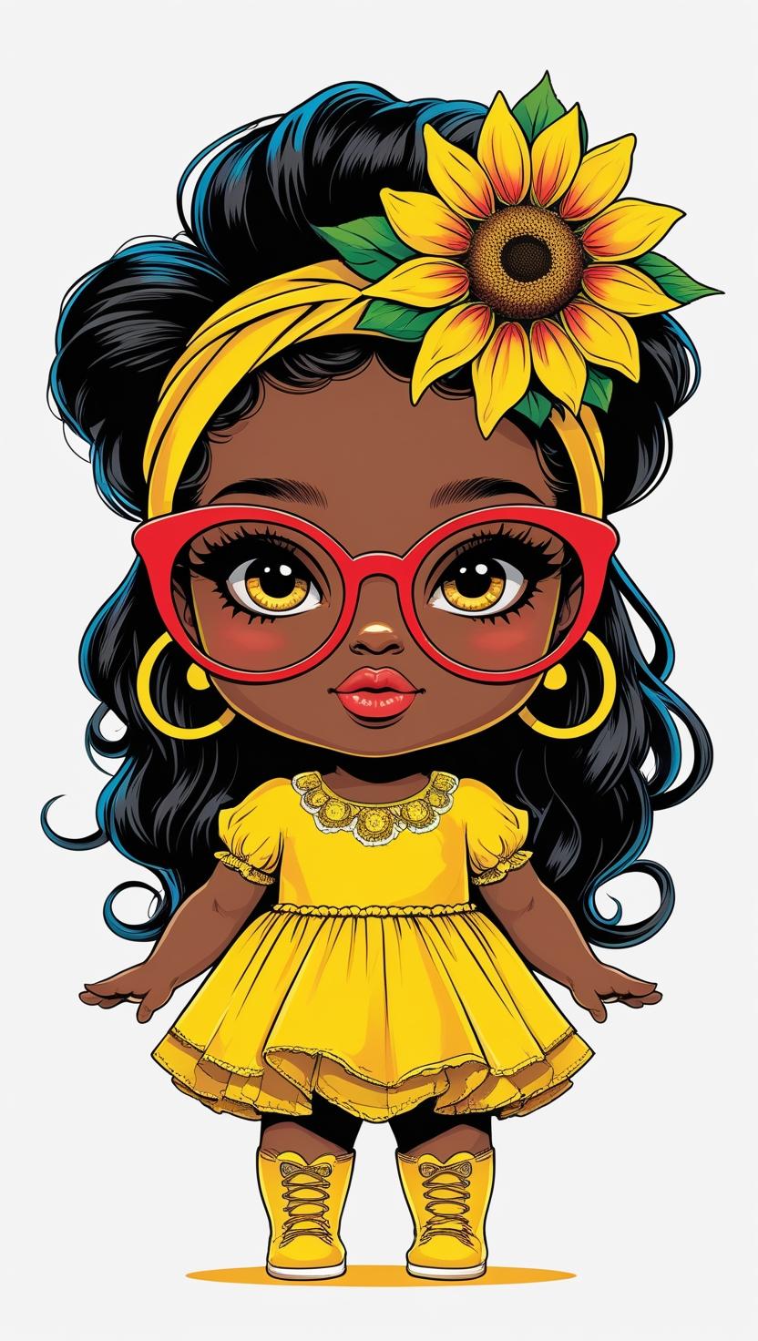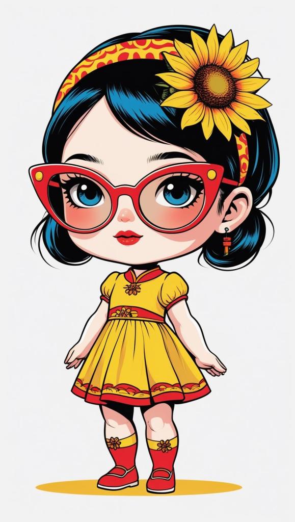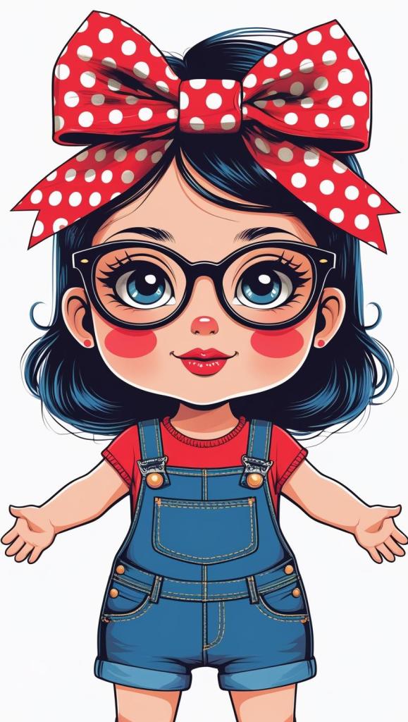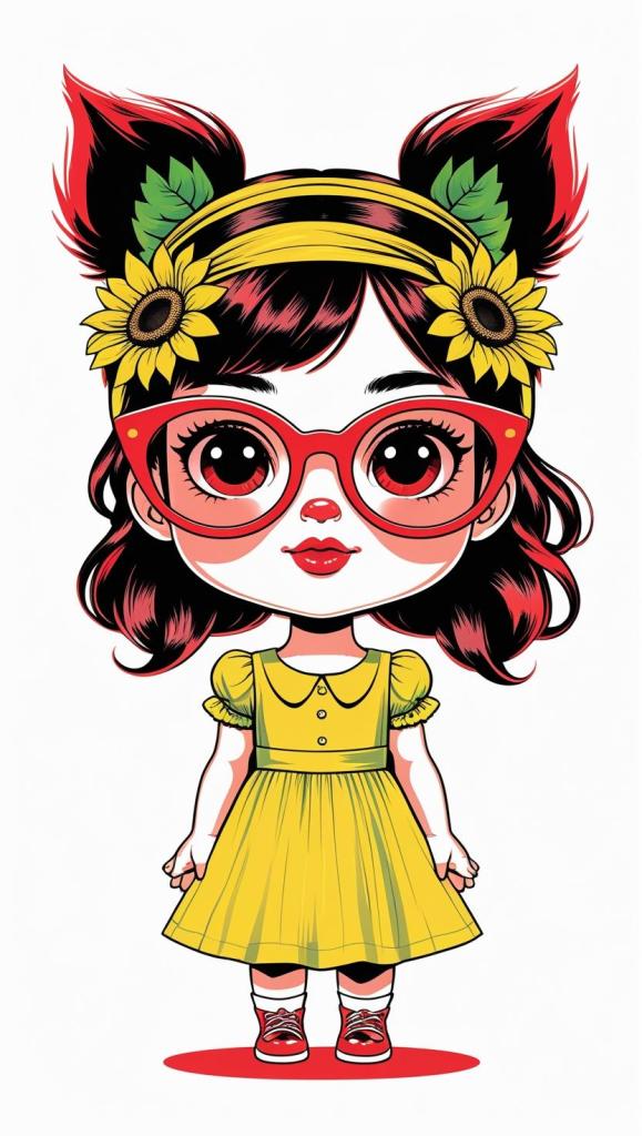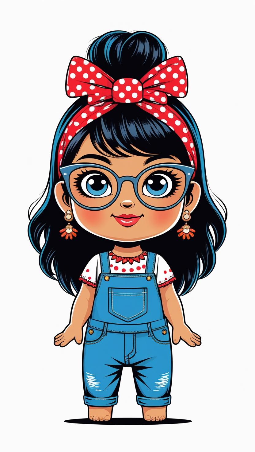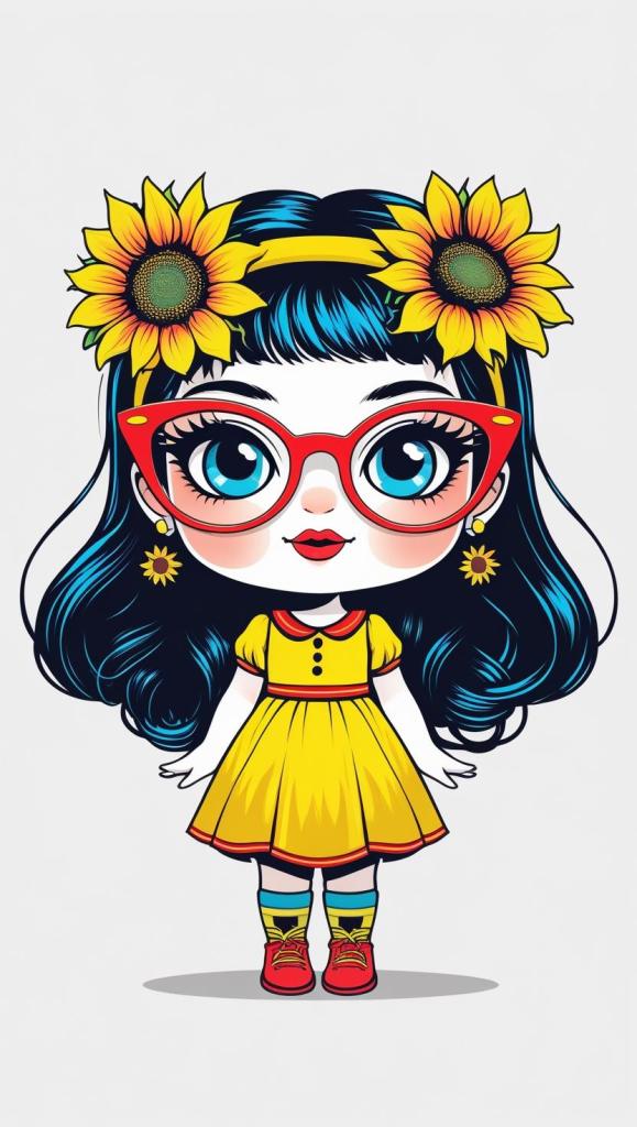 Stylish girl with purple-tinted glasses, cozy knitted sweater, pastel kawaii, white background, high resolution, PNG, vector clipart, full body