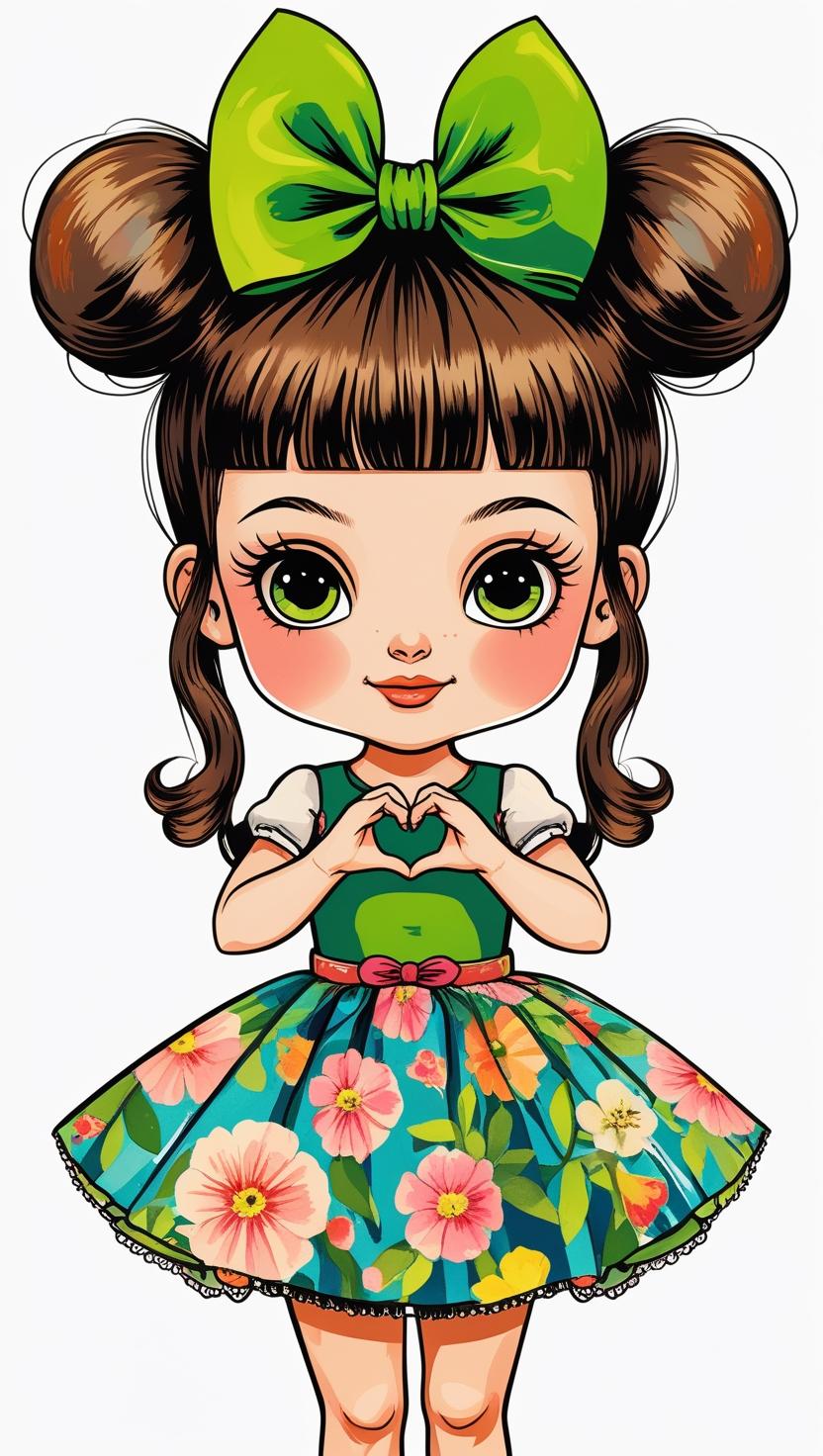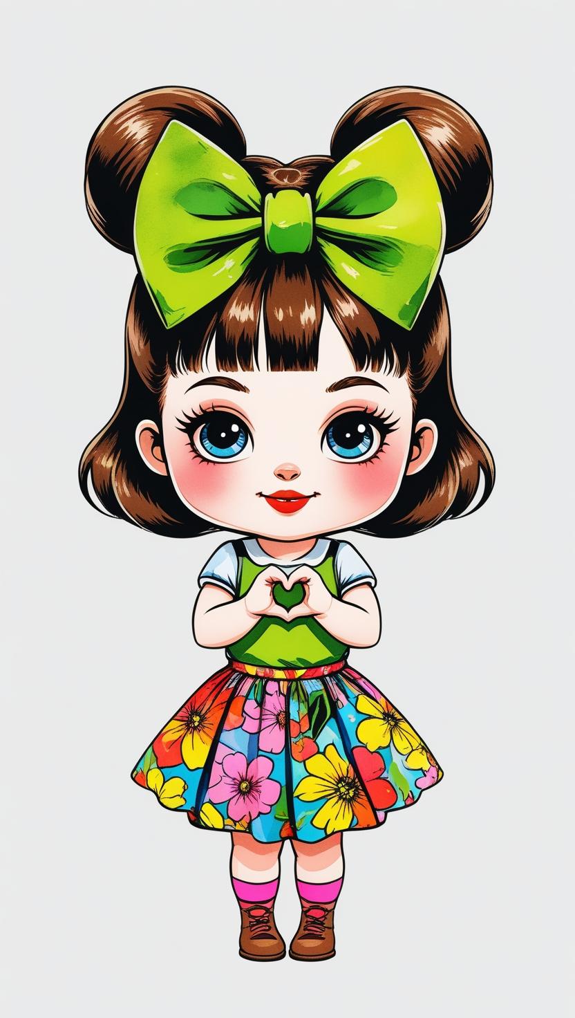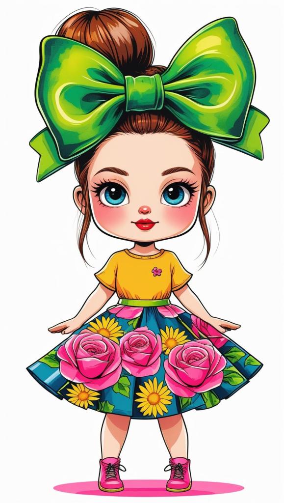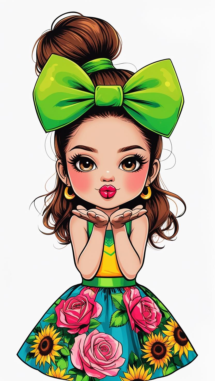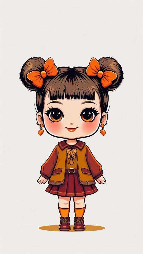 Adorable girl with braided bun, lavender bow, cozy sweater, pastel kawaii, white background, high resolution, PNG, vector clipart