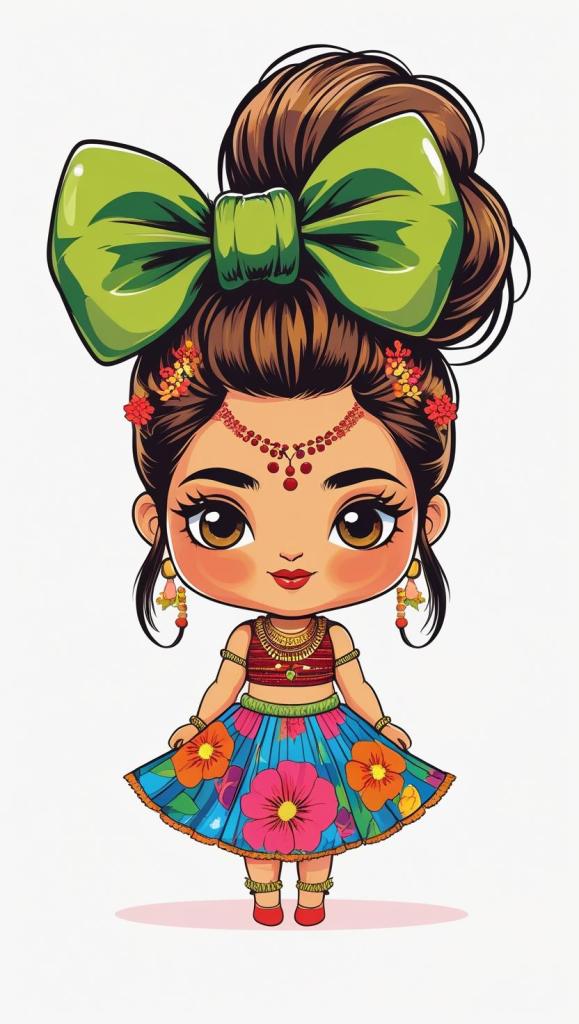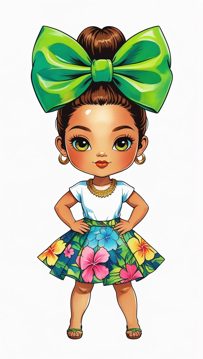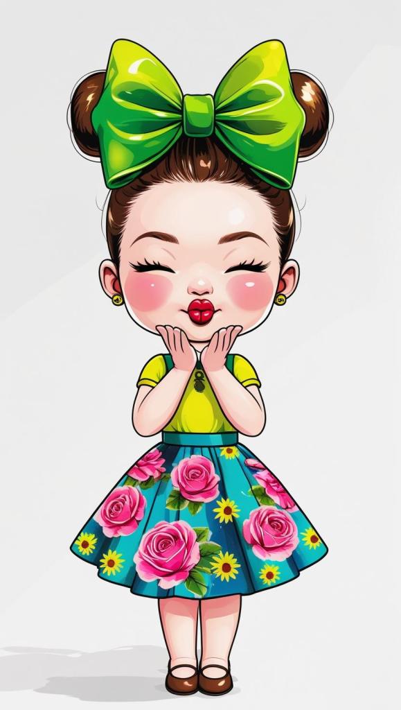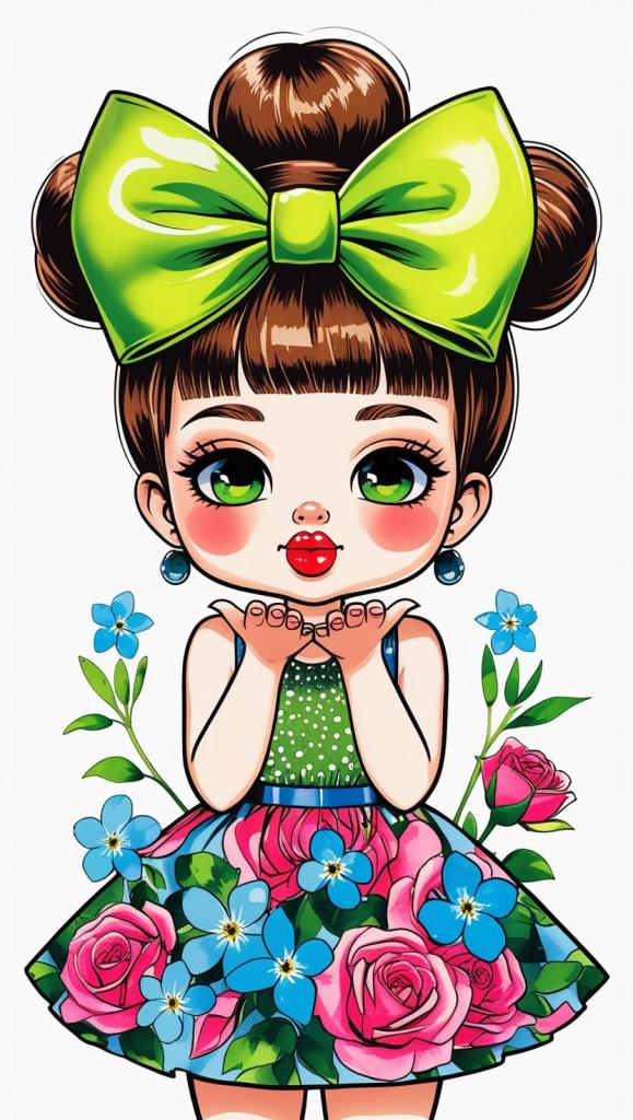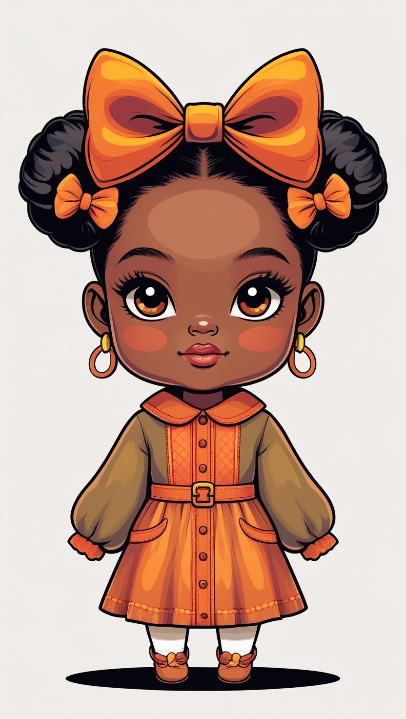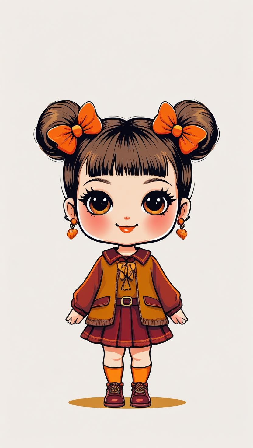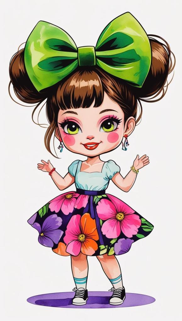 Adorable girl with braided bun, lavender bow, cozy sweater, pastel kawaii, white background, high resolution, PNG, vector clipart