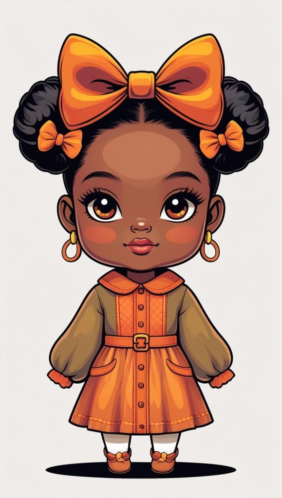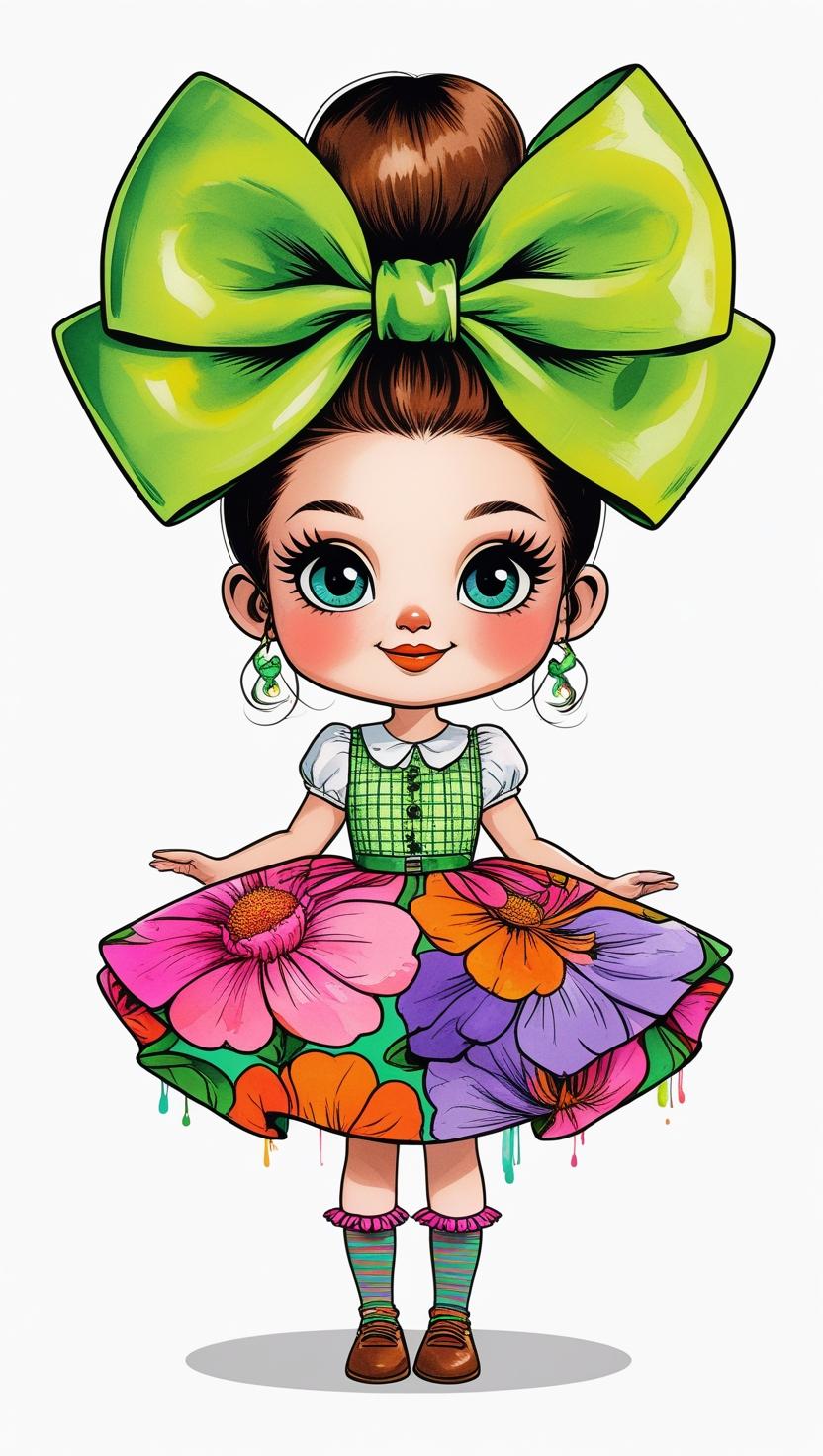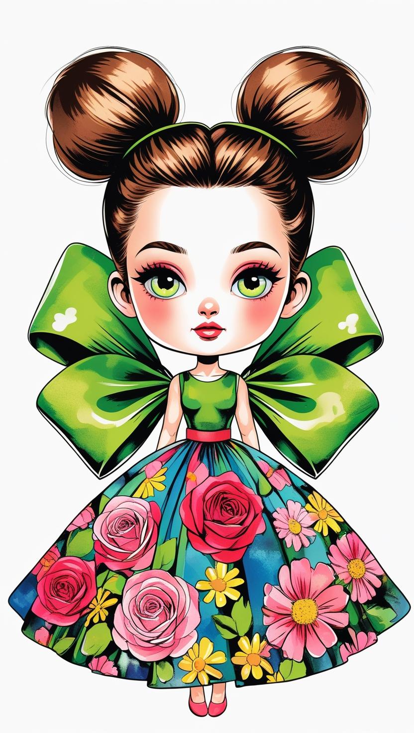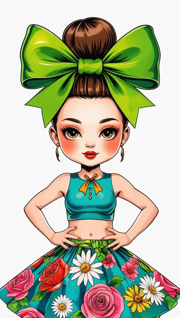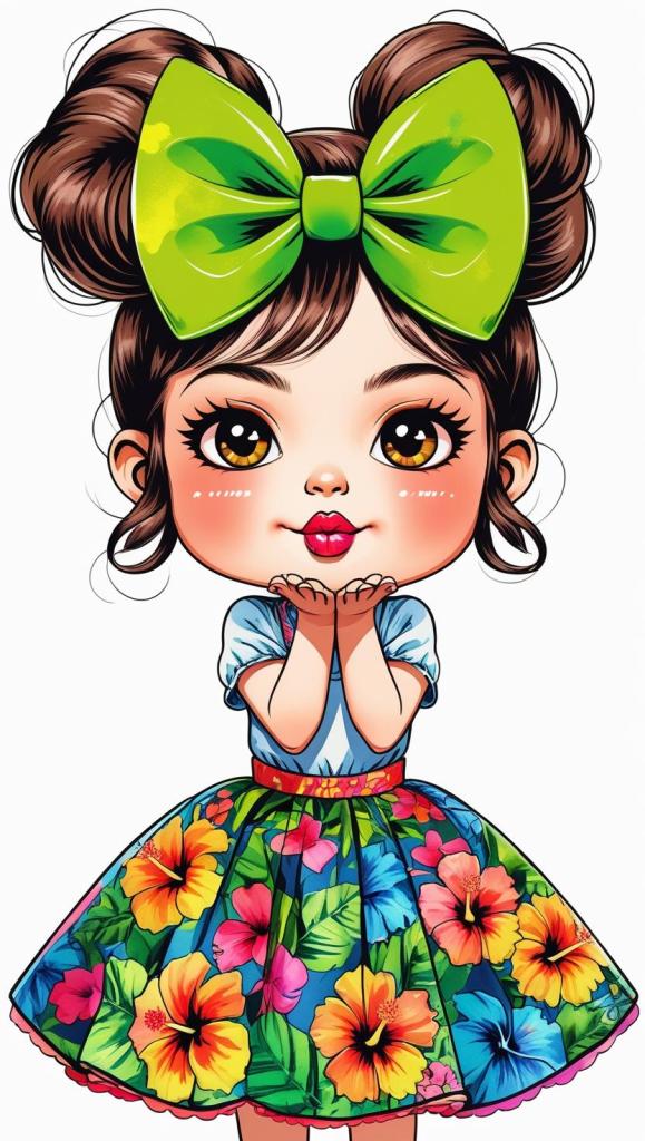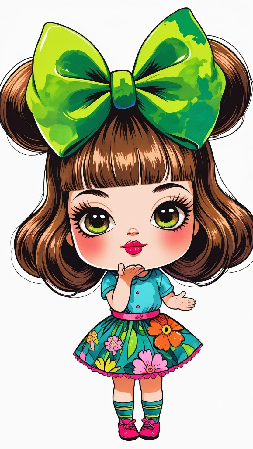 Adorable girl with braided bun, lavender bow, cozy sweater, pastel kawaii, white background, high resolution, PNG, vector clipart