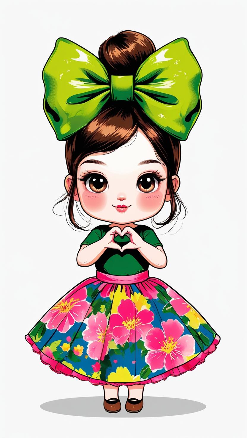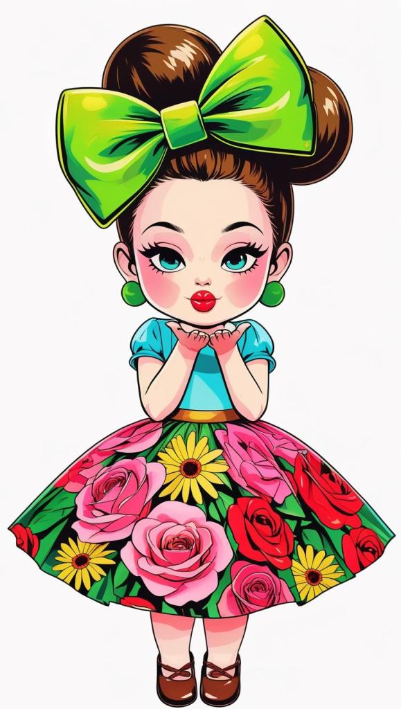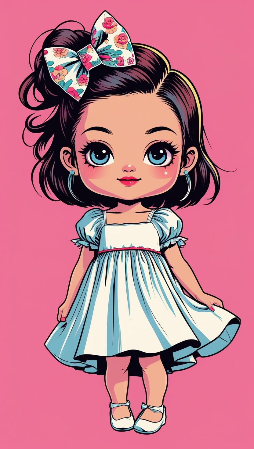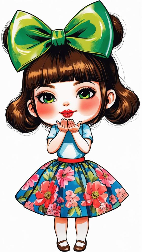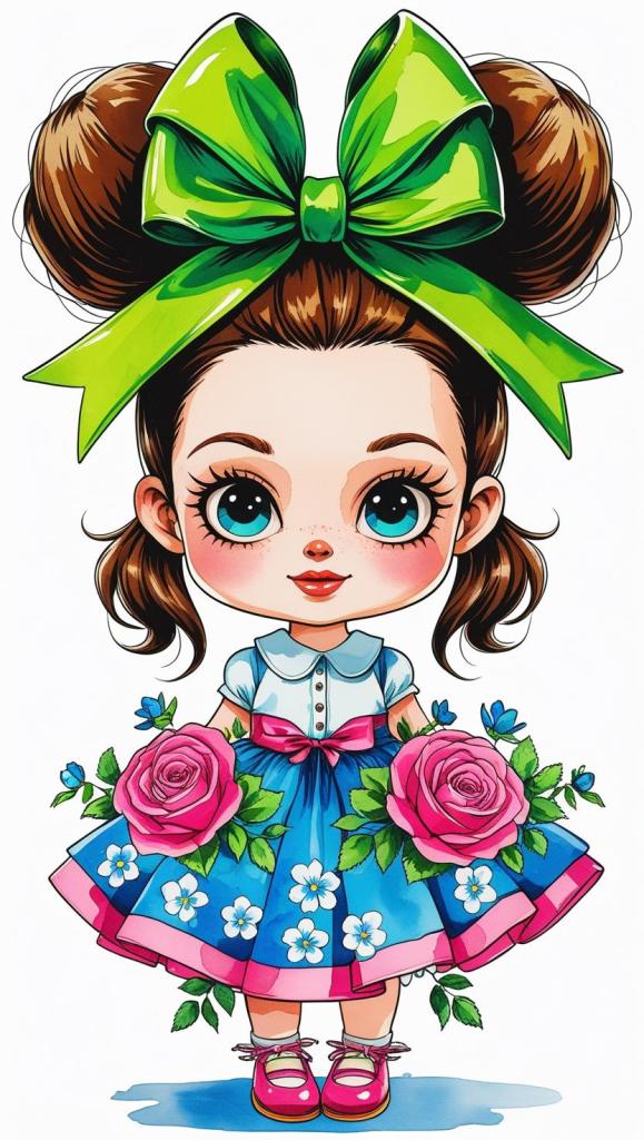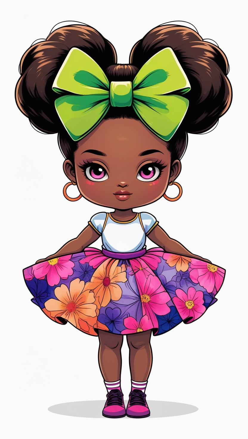 Adorable girl with braided bun, lavender bow, cozy sweater, pastel kawaii, white background, high resolution, PNG, vector clipart