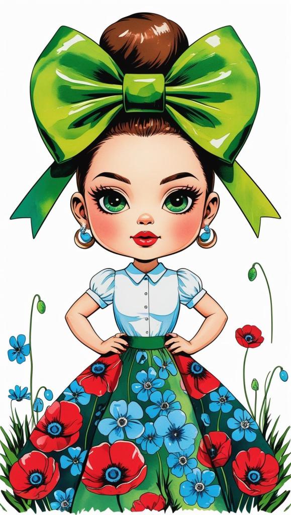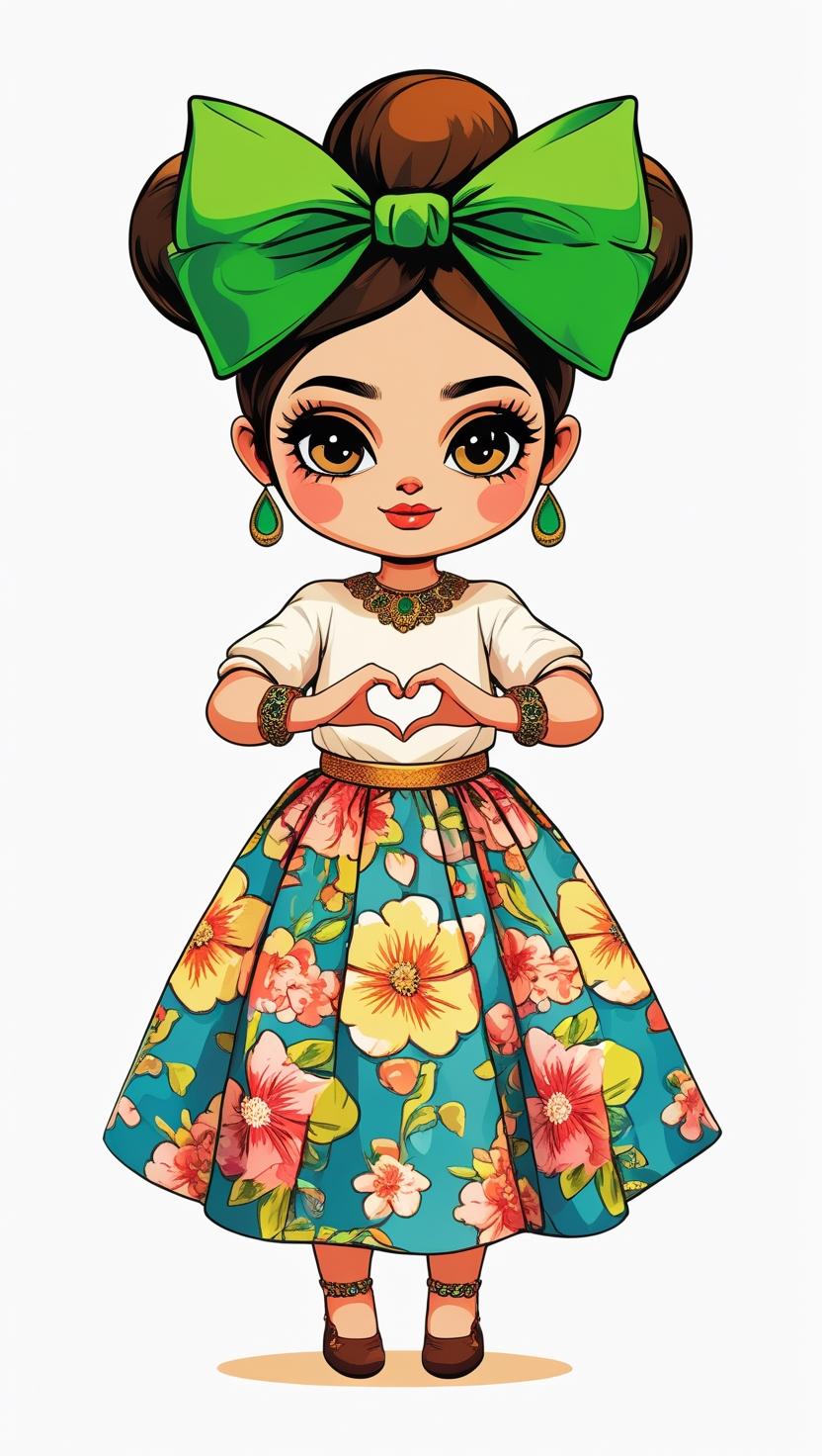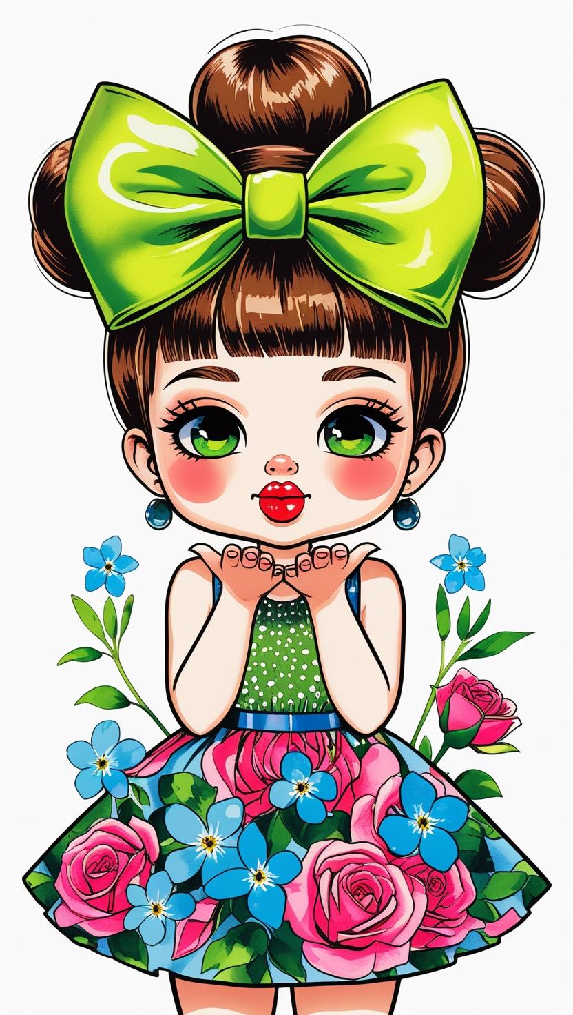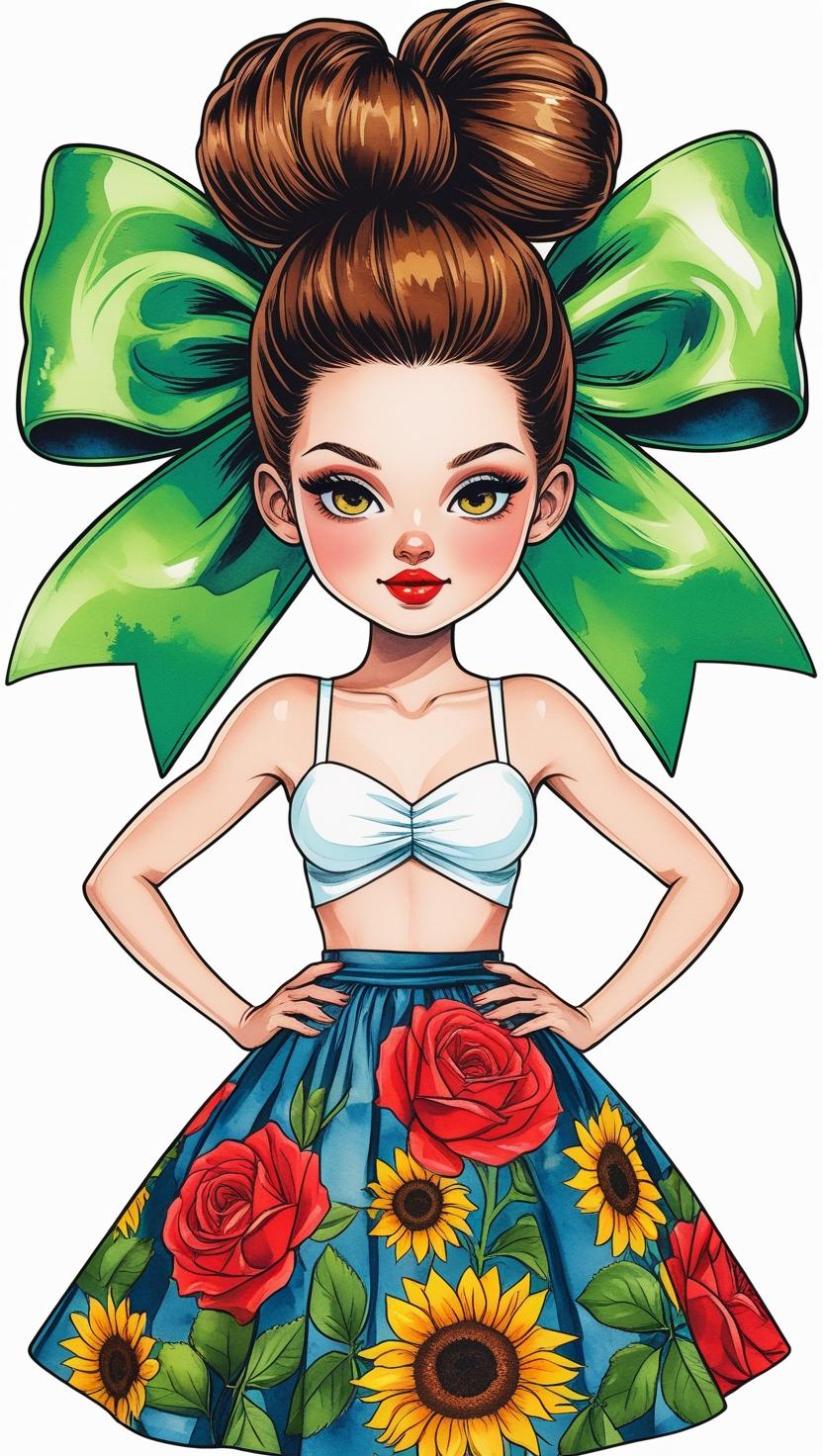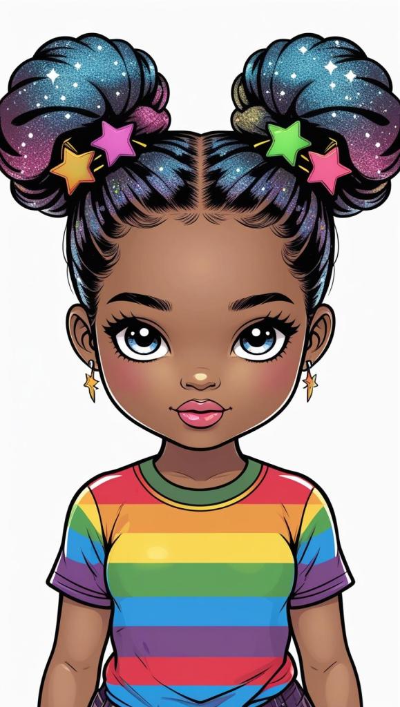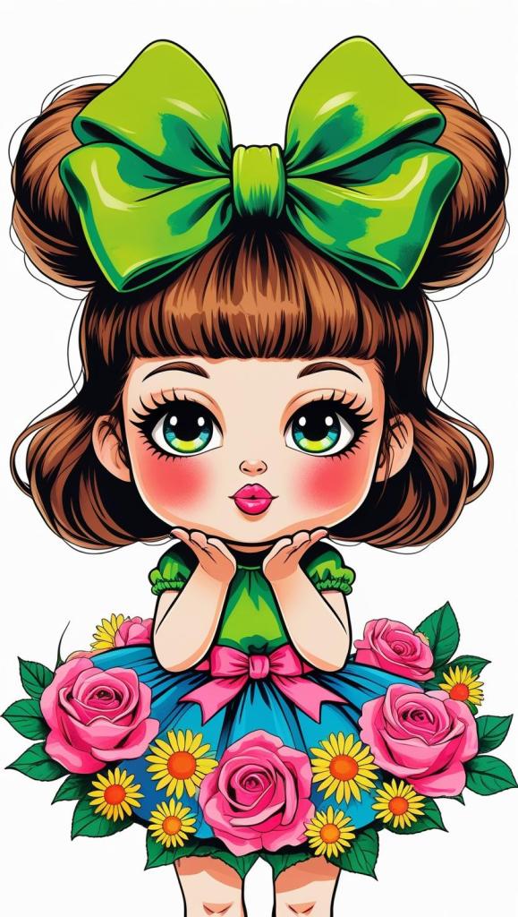 Adorable girl with braided bun, lavender bow, cozy sweater, pastel kawaii, white background, high resolution, PNG, vector clipart