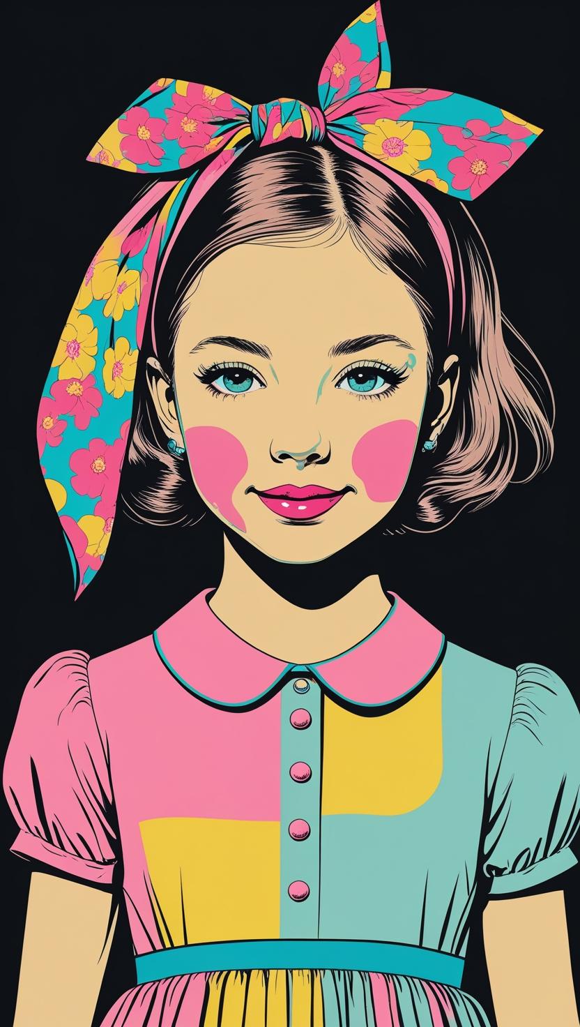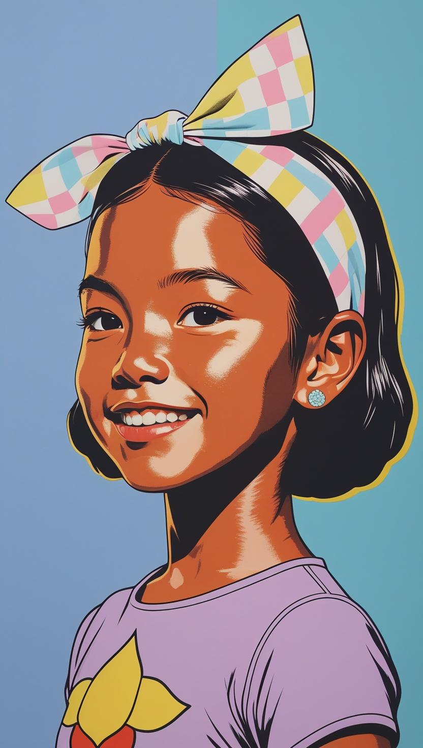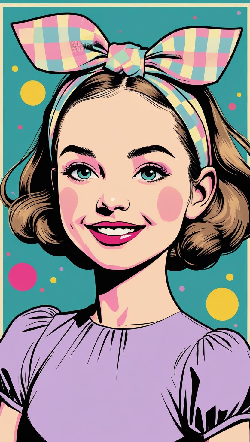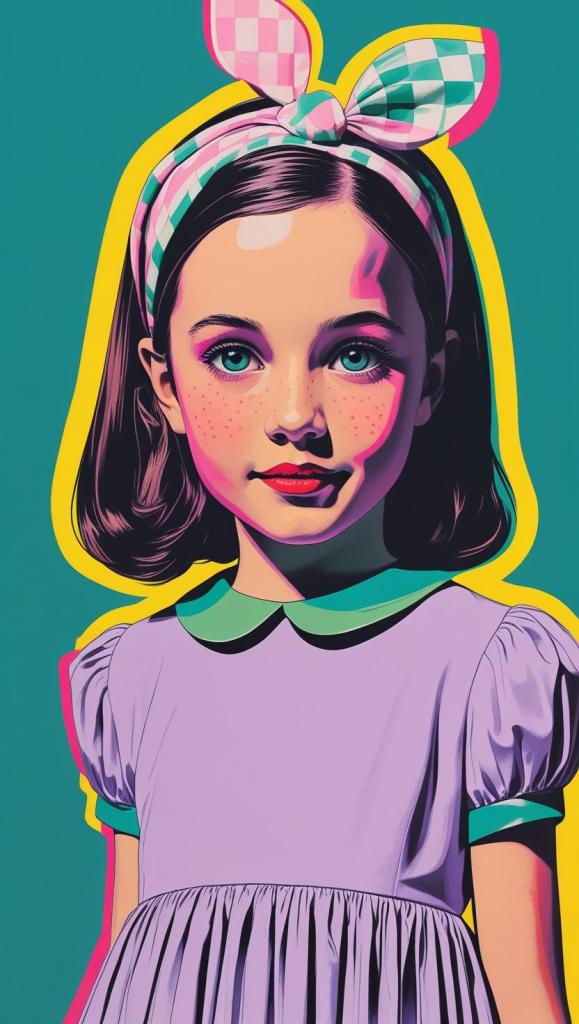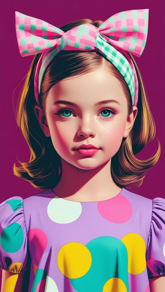 Sweet girl with pastel checkered headband, lilac dress