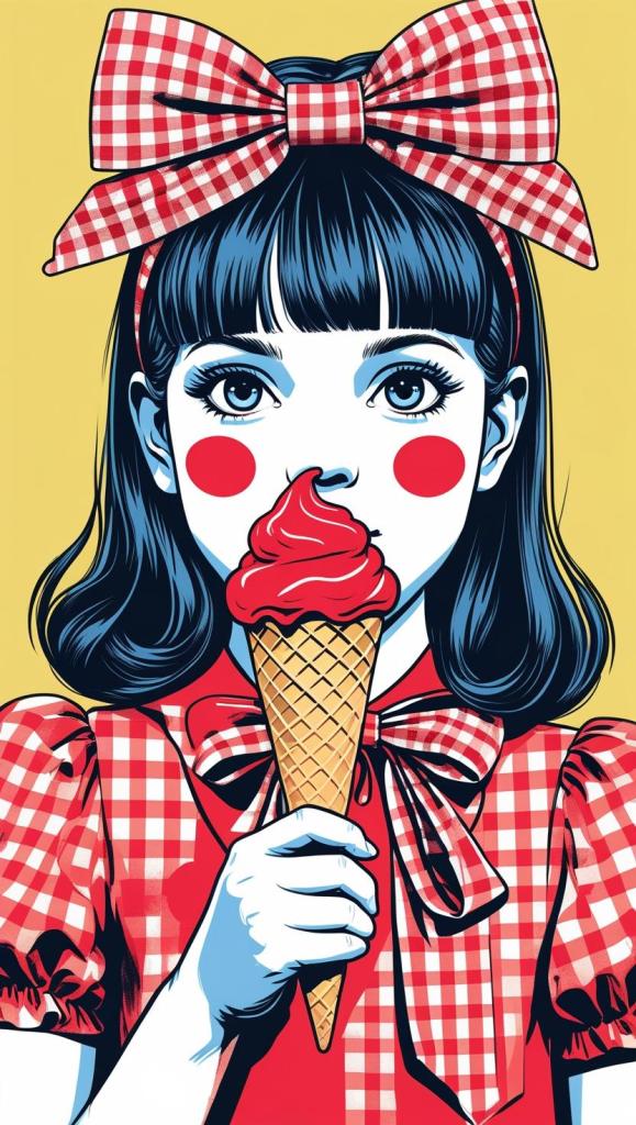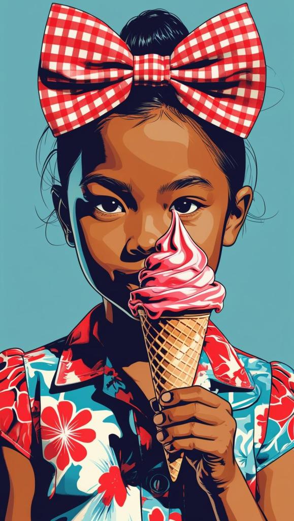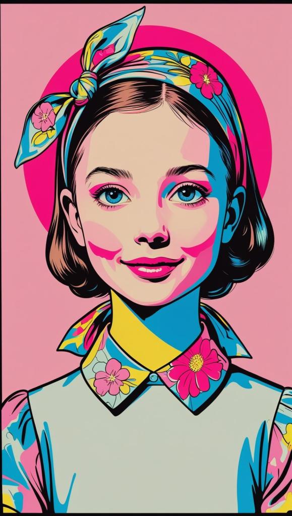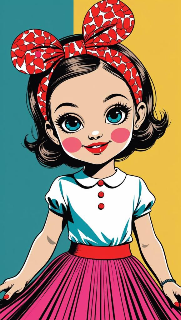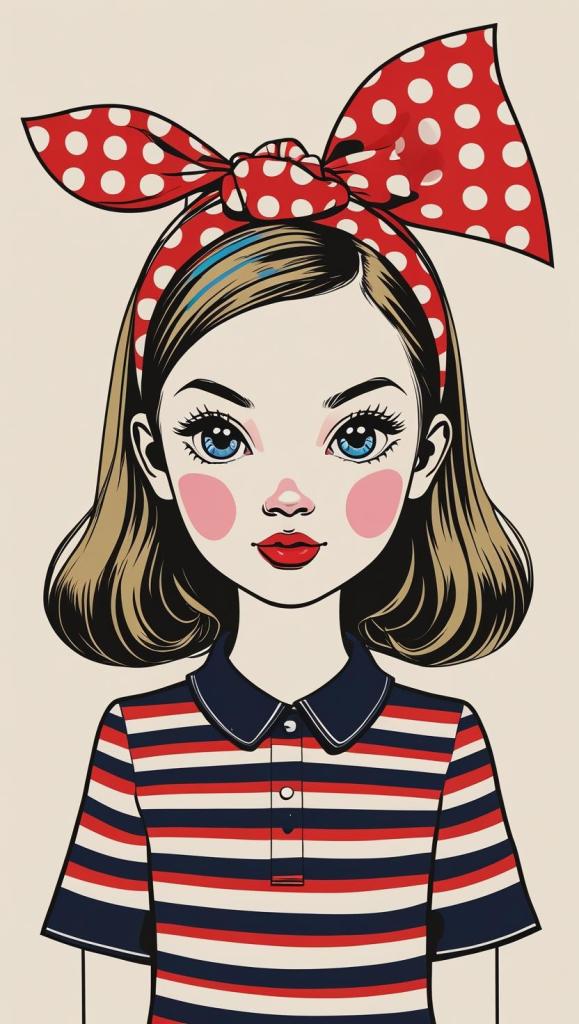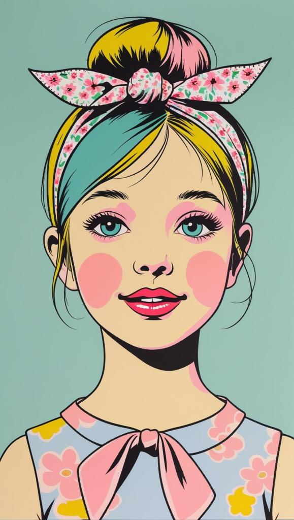 Sweet girl with pastel checkered headband, lilac dress