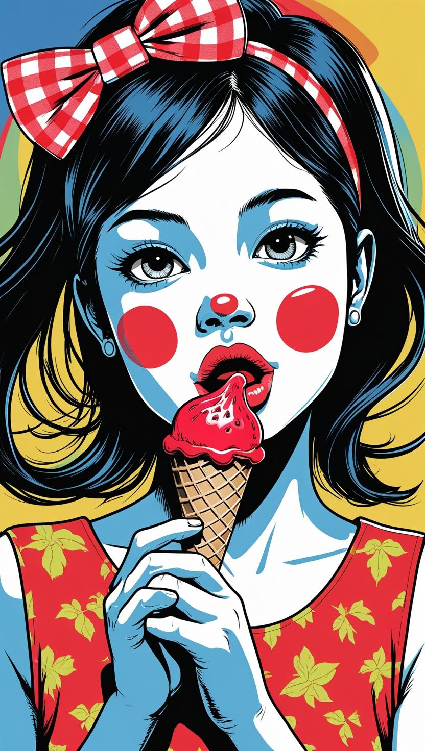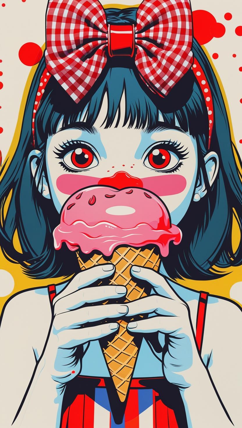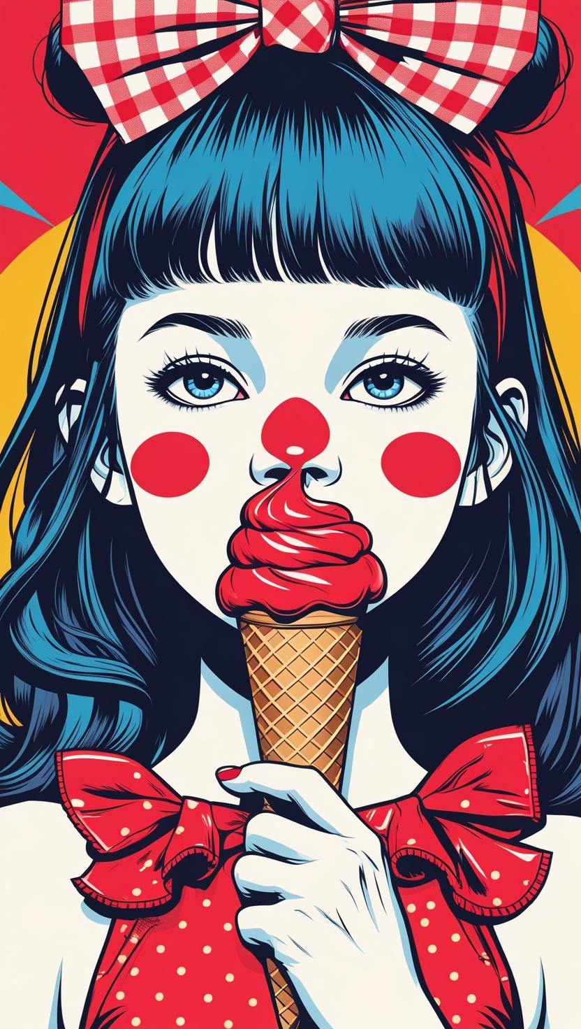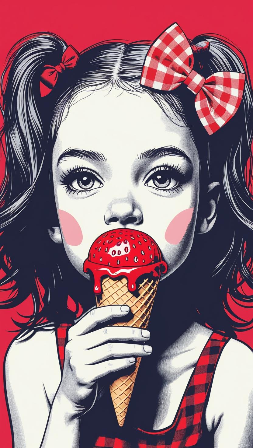 Sweet girl with pastel checkered headband, lilac dress